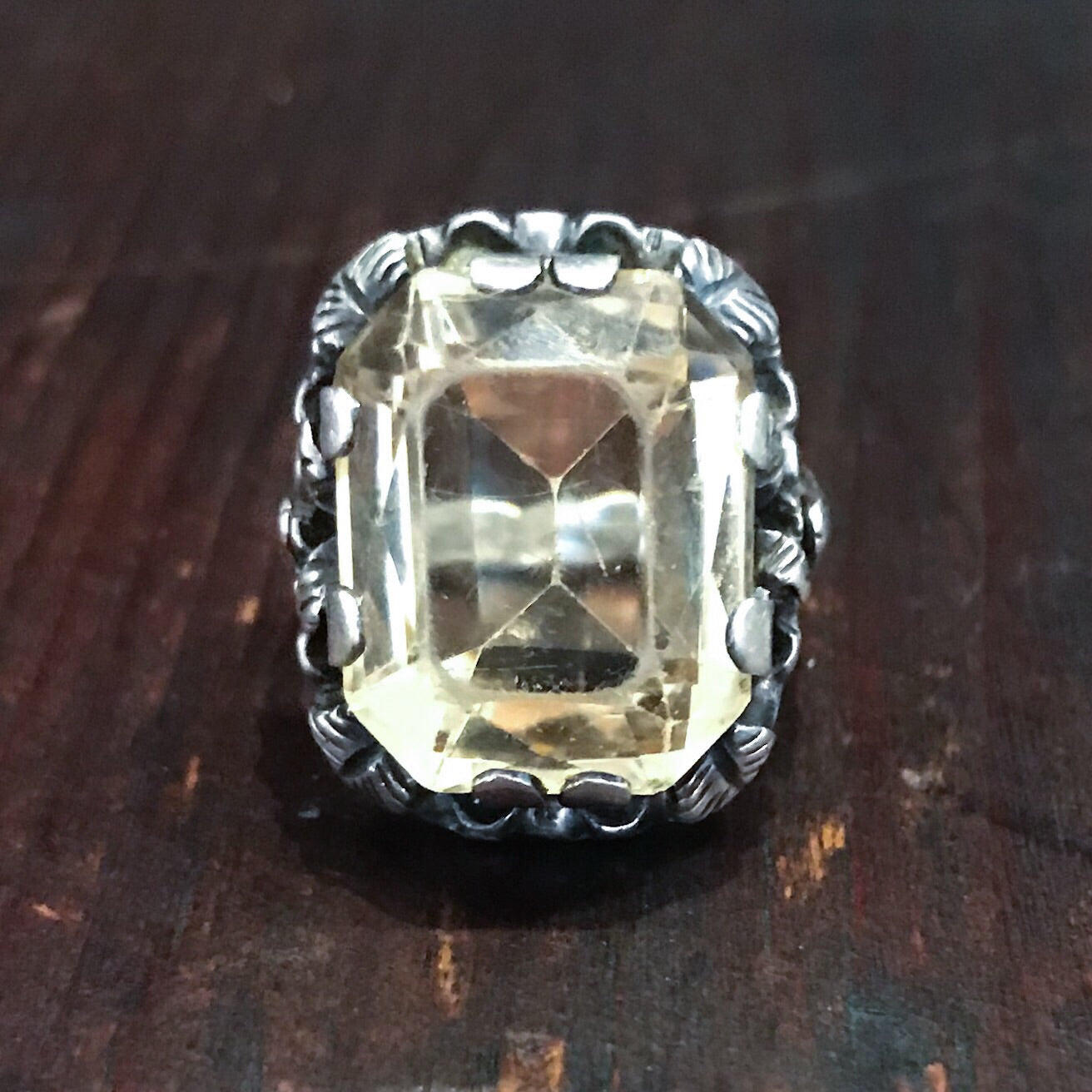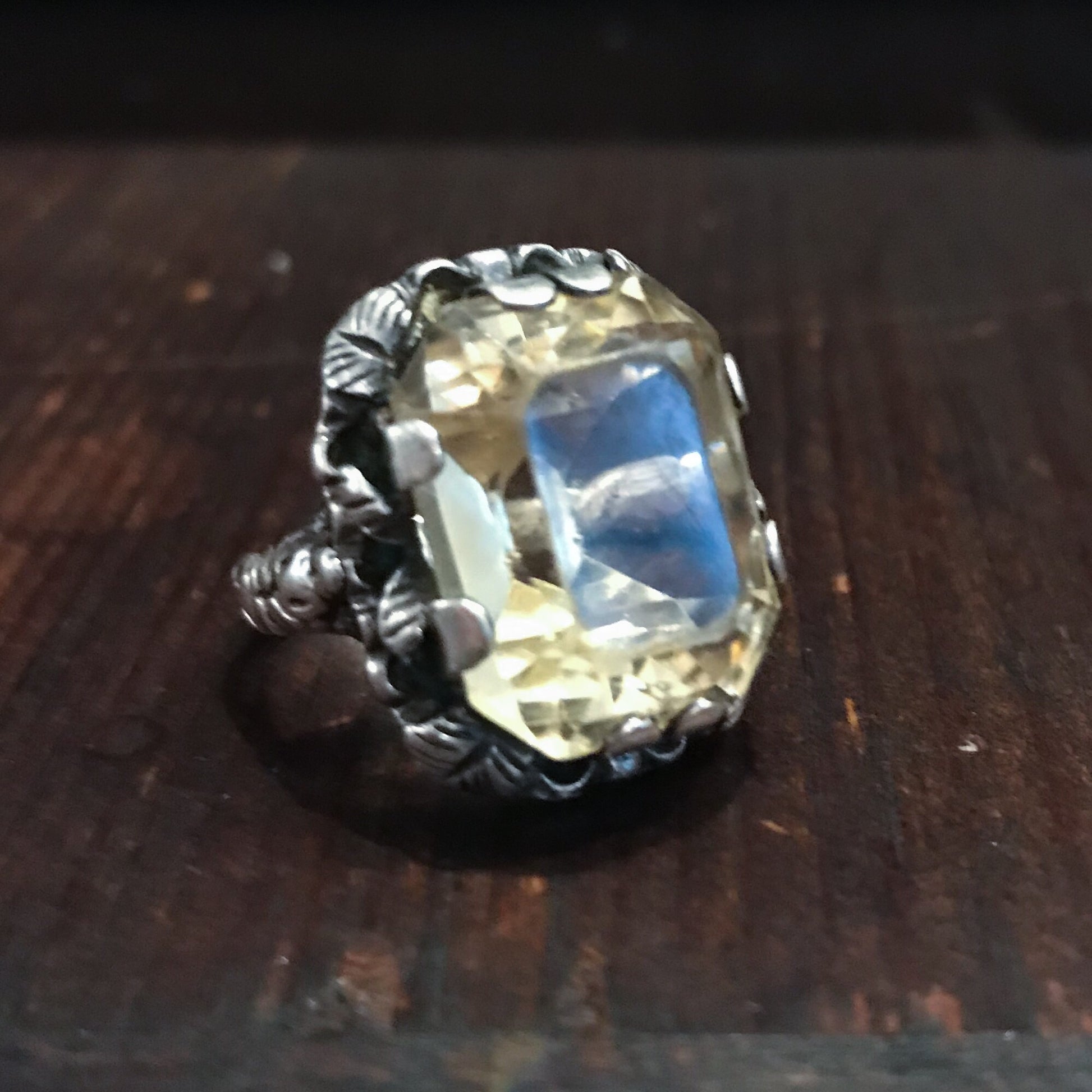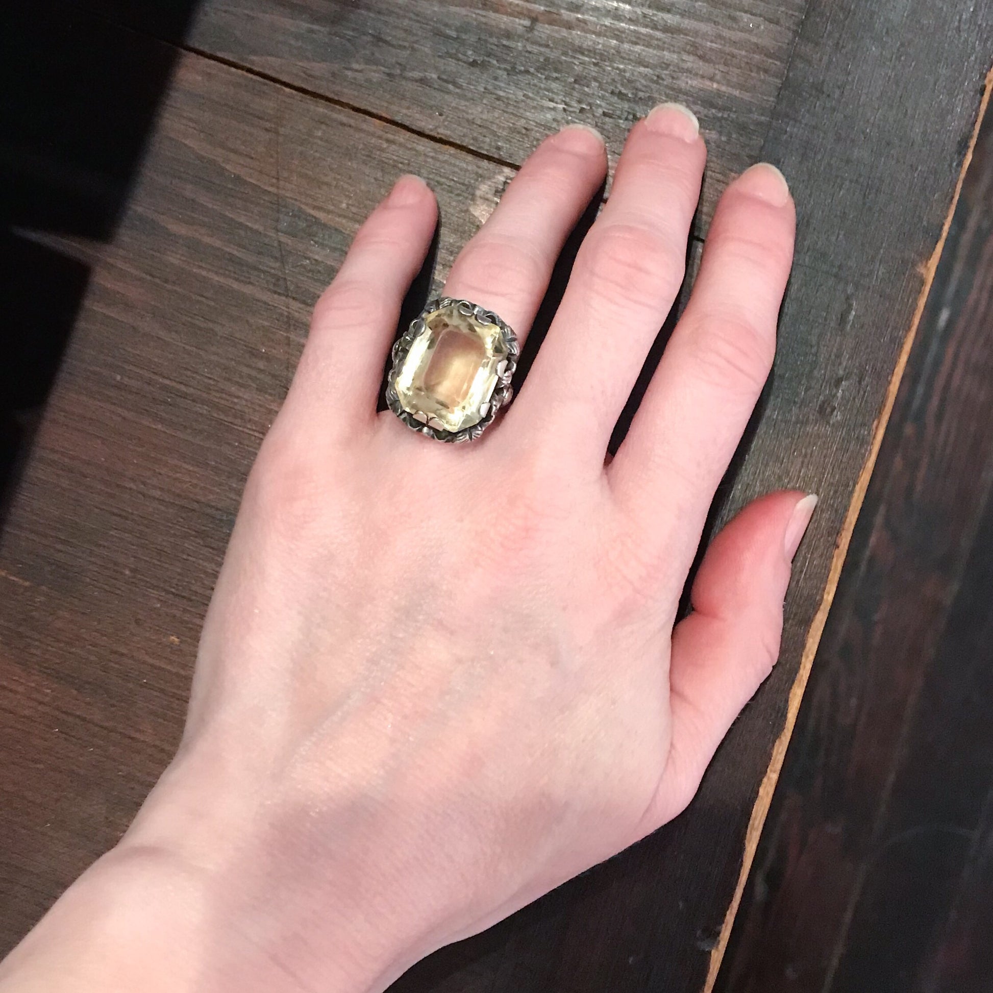 SOLD--Vintage Ornate Citrine Ring Sterling, Vienna c. 1940