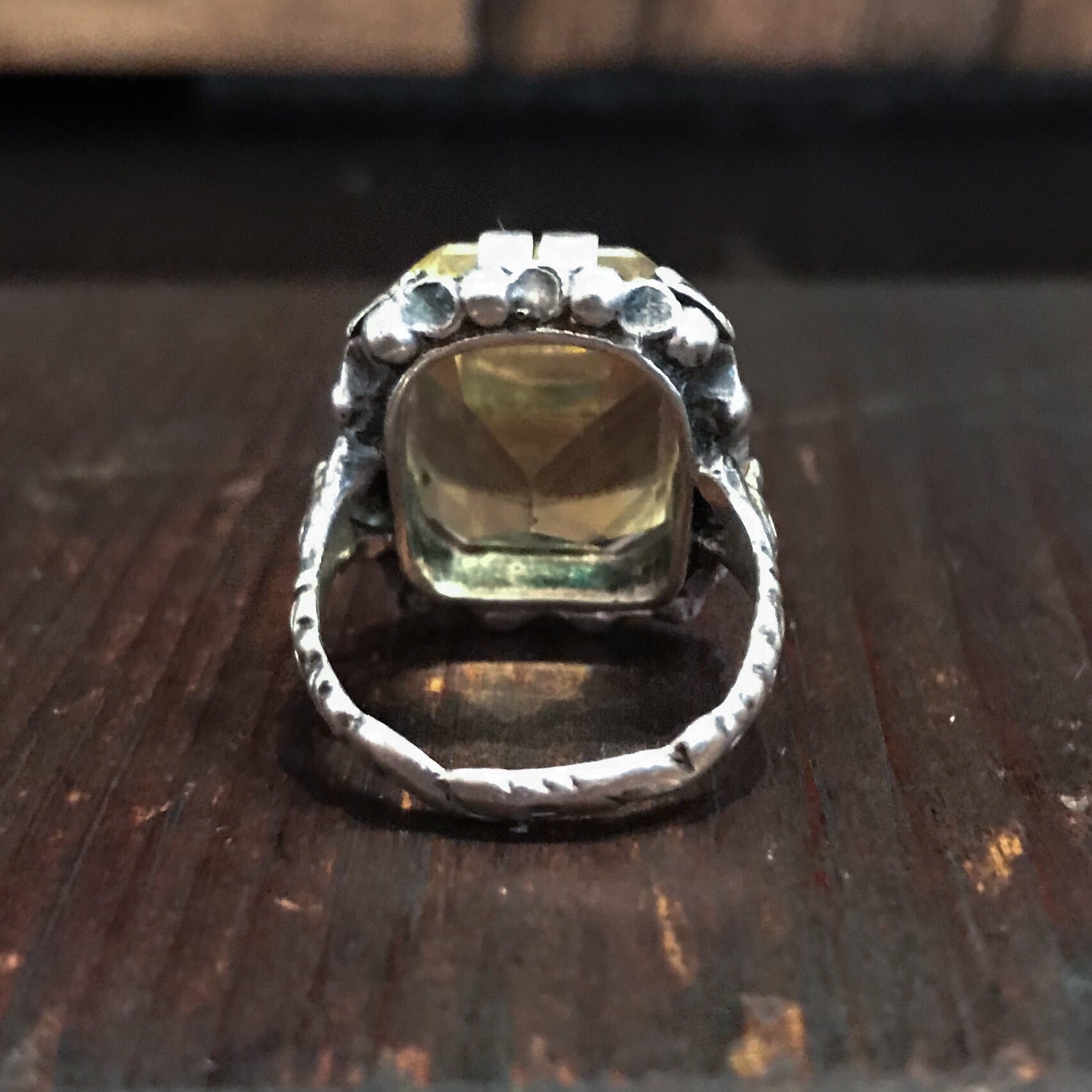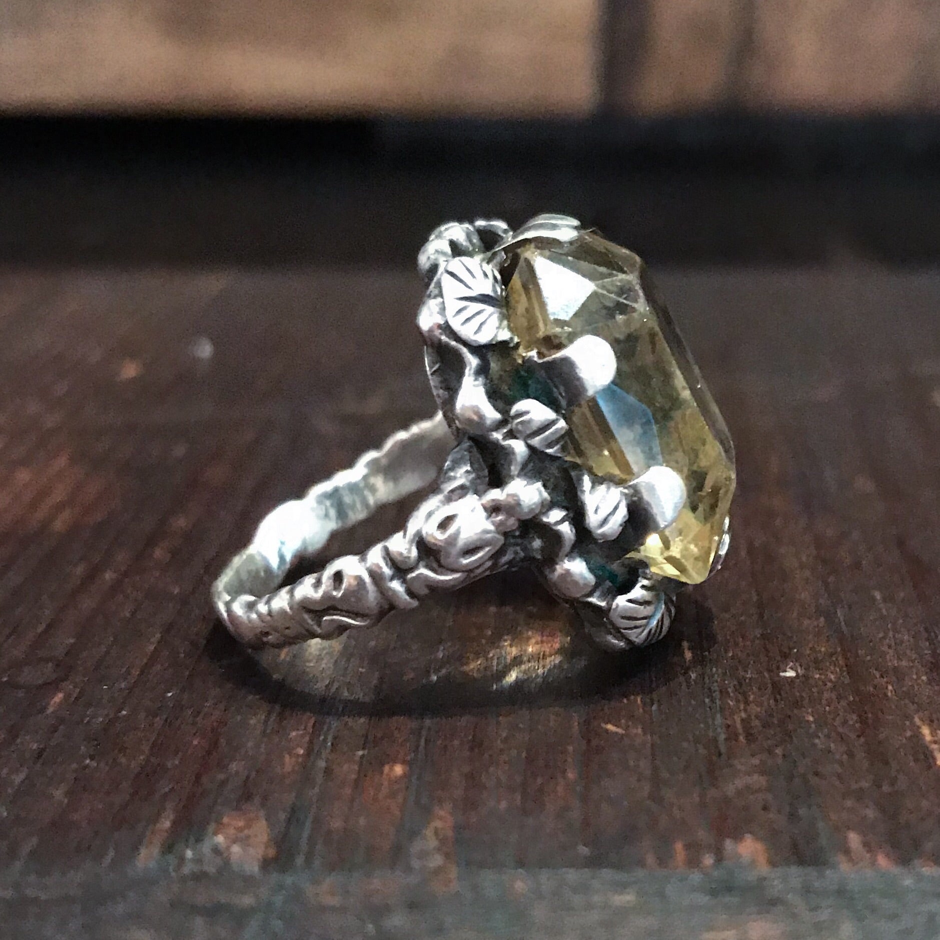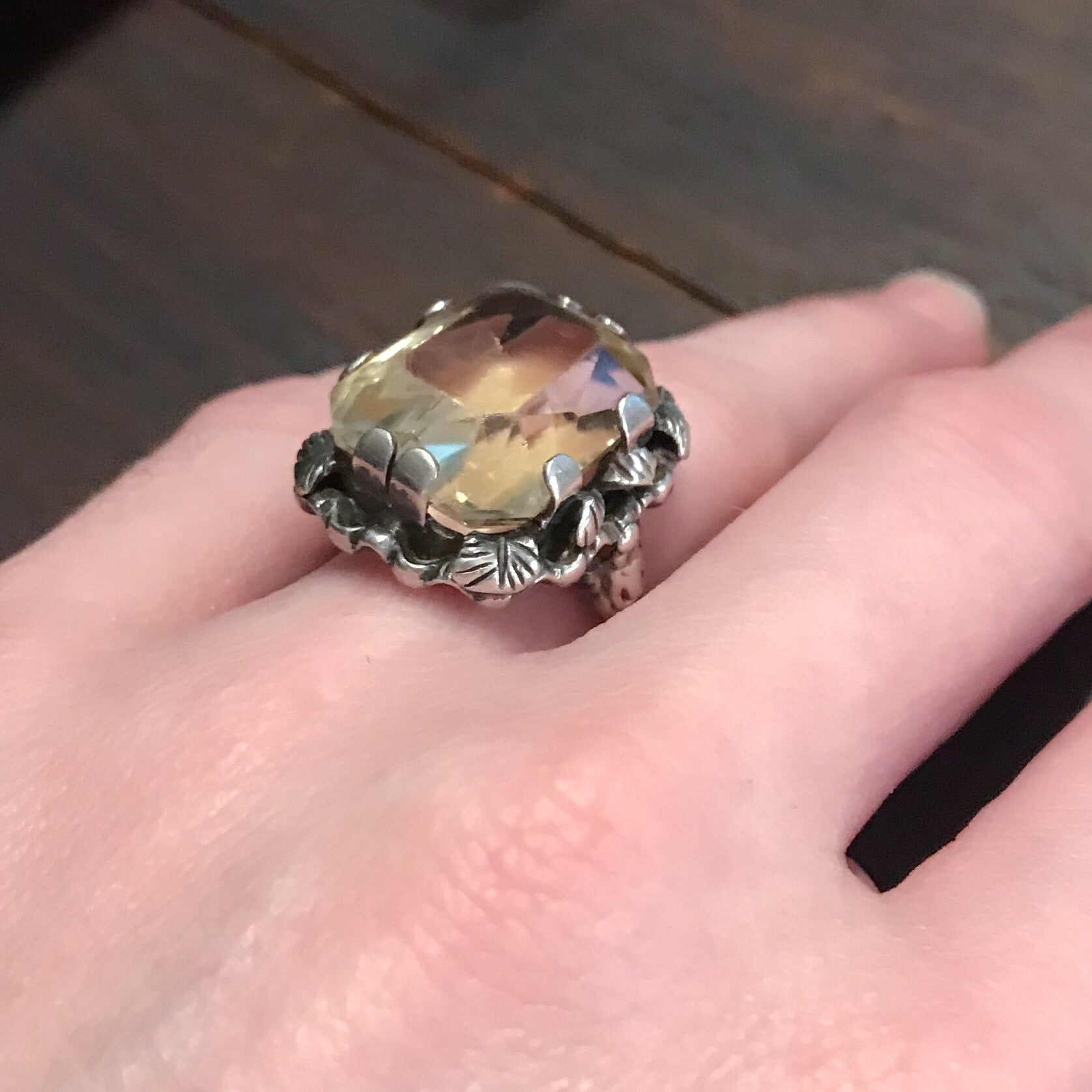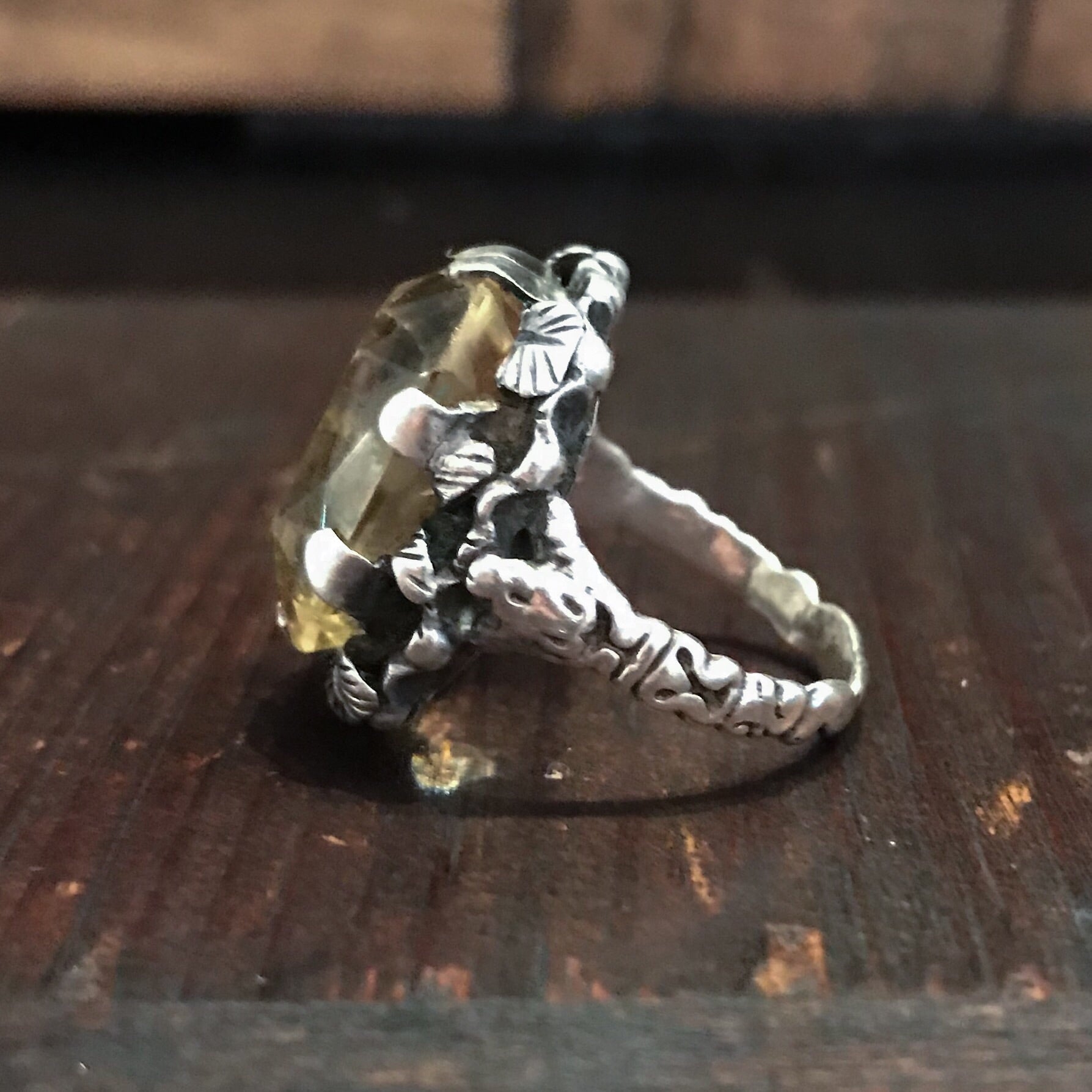 SOLD--Vintage Ornate Citrine Ring Sterling, Vienna c. 1940