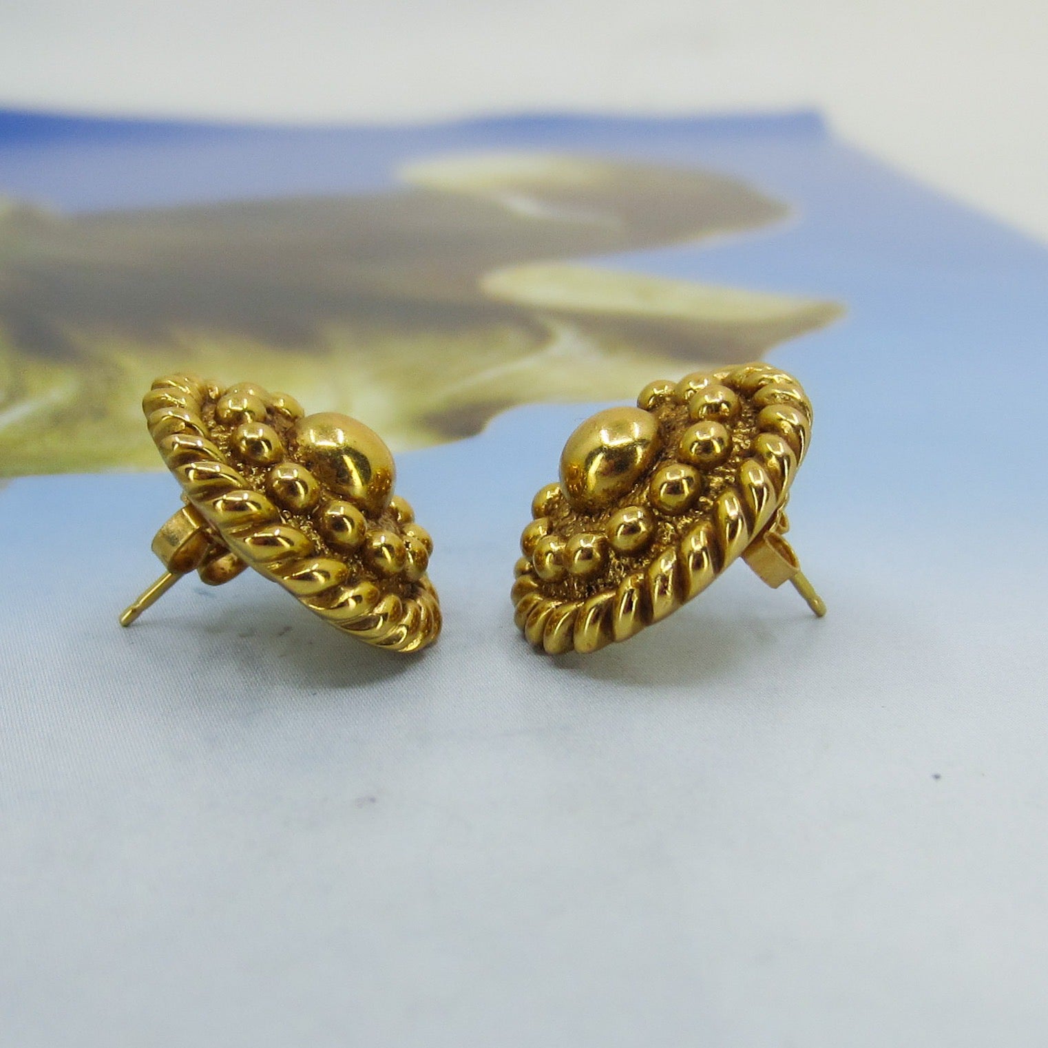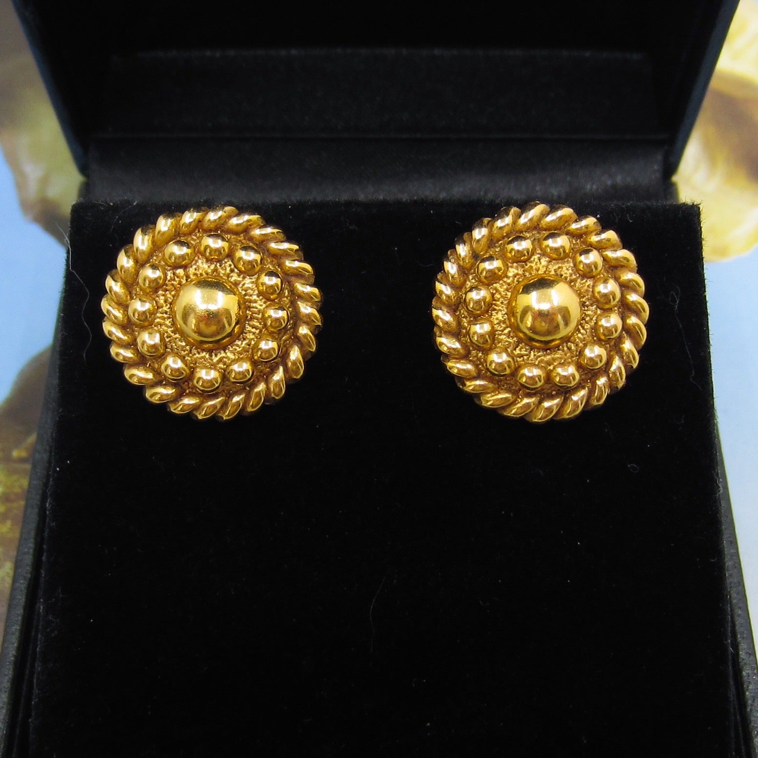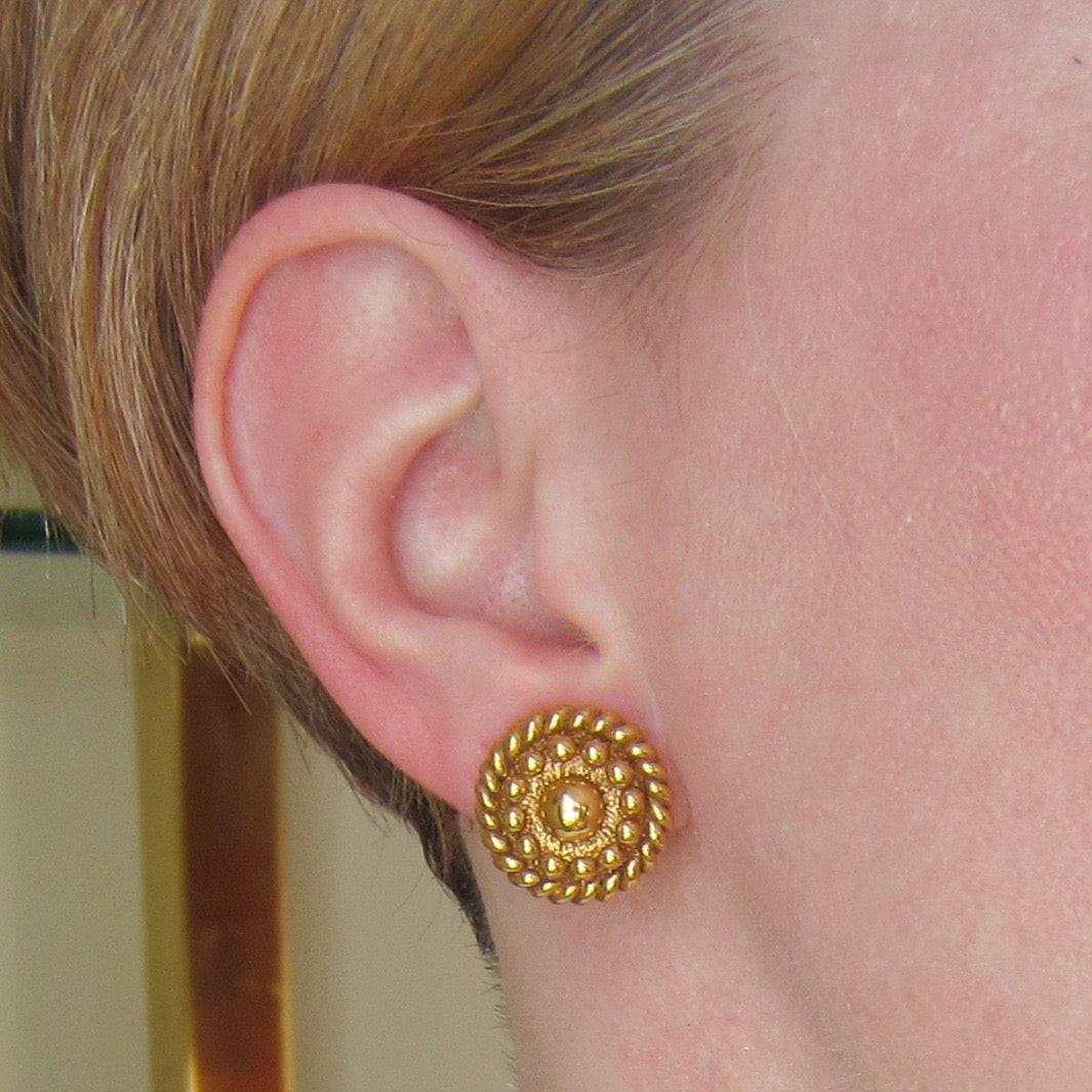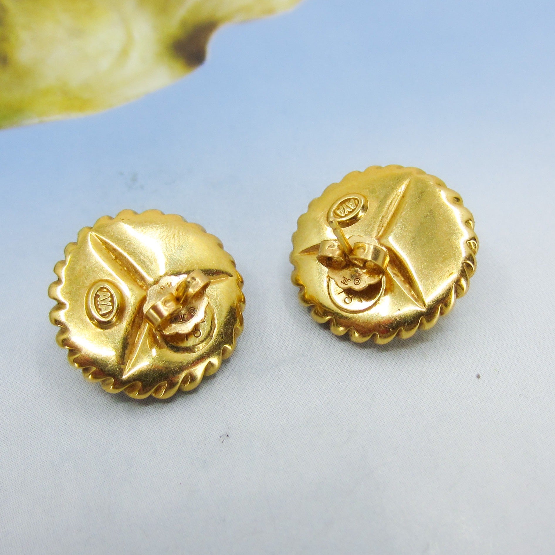 SOLD-Vintage Patterned Button Earrings 18k c. 1980
