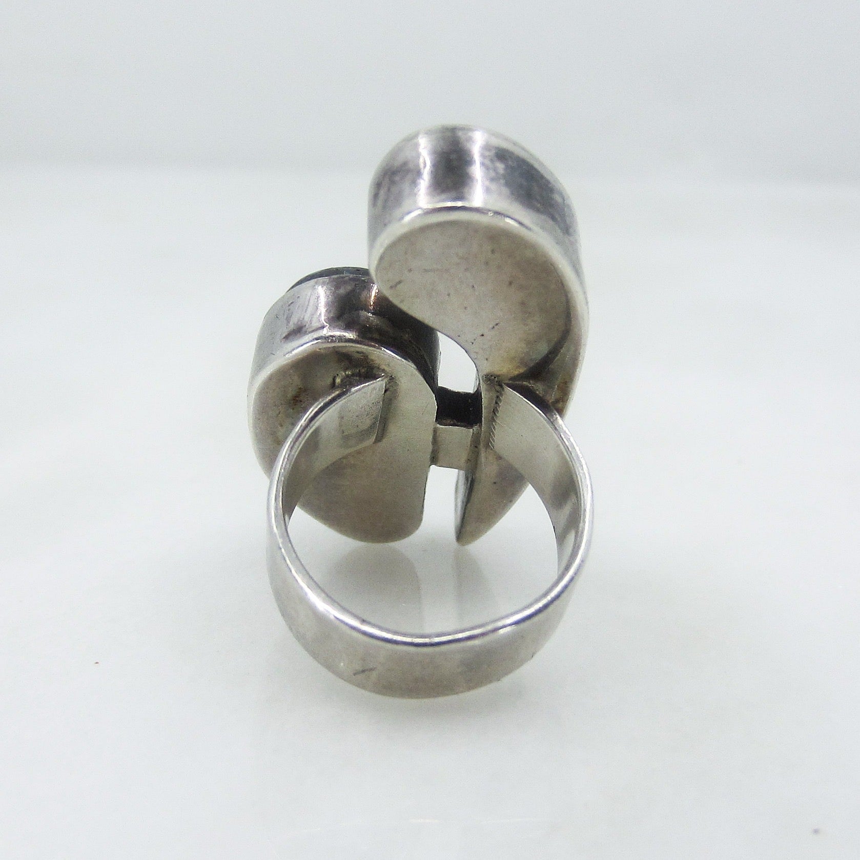 I am loving this fabulous ring, with its crazy Post-Modern design and beautiful stone! Made circa 1980's, Navajo and signed but unknown maker. Fantastic!