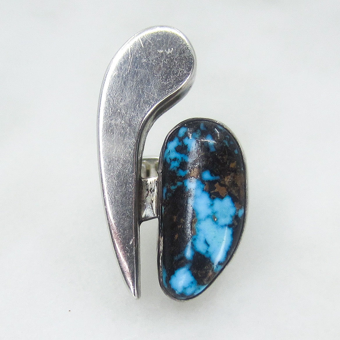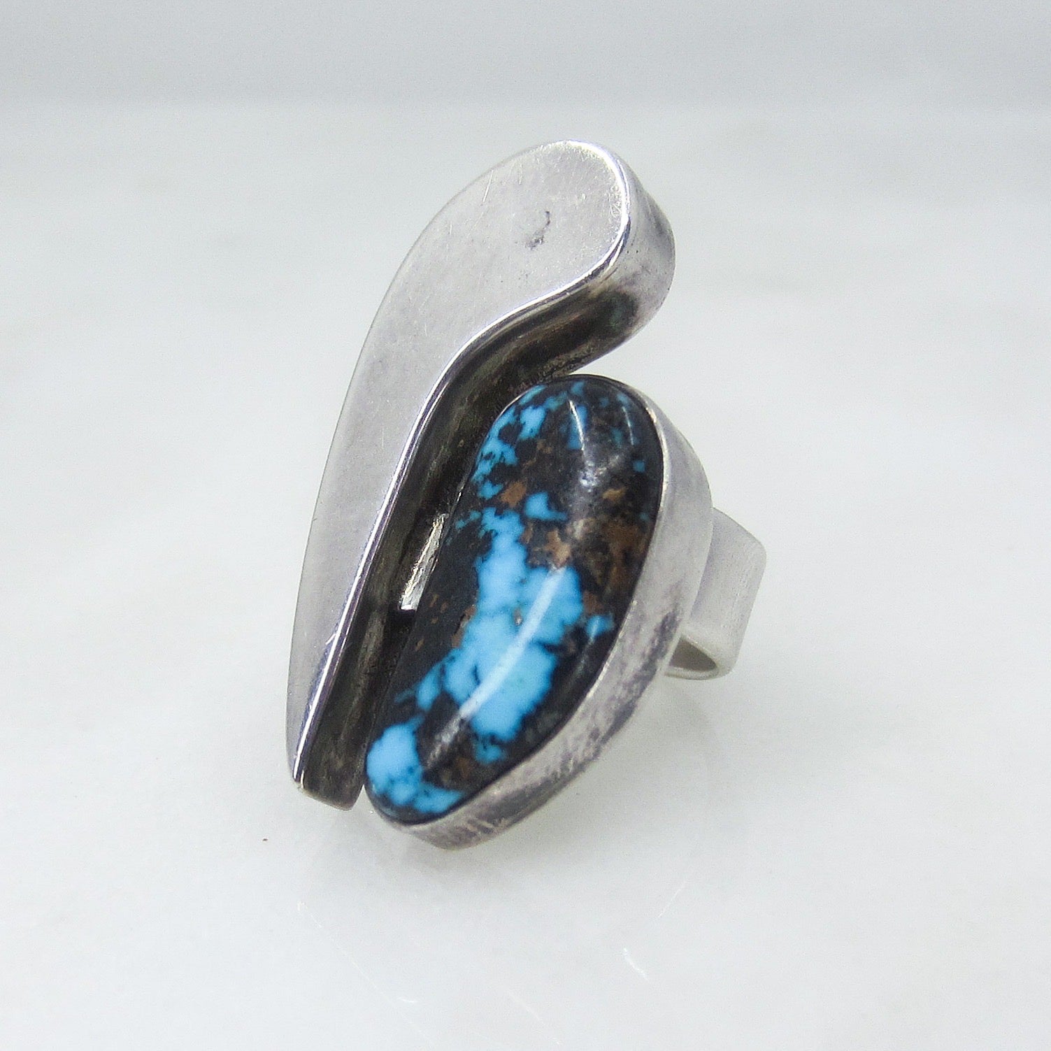SOLD--Vintage Post-Modern Turquoise Ring Sterling, Navajo c. 1980
