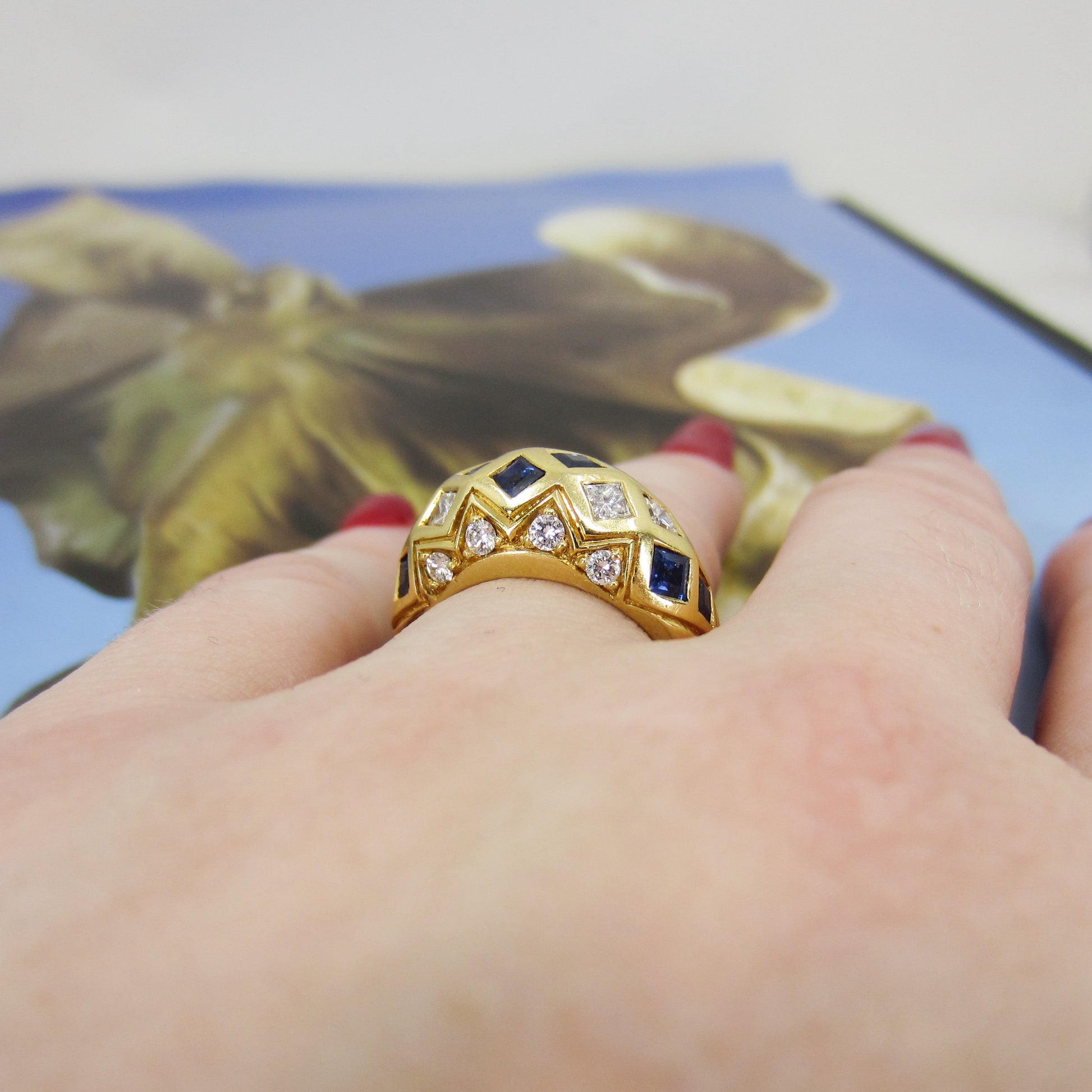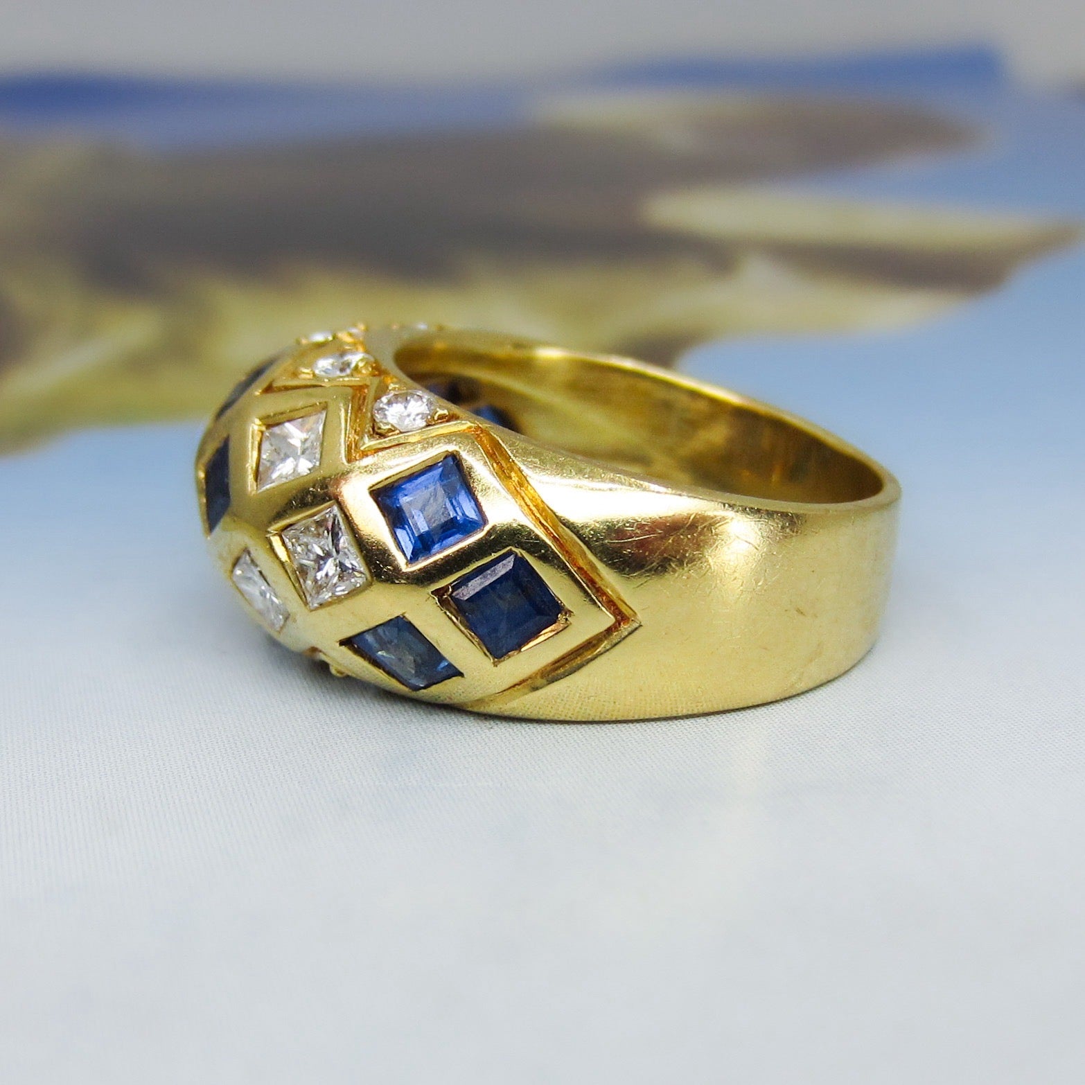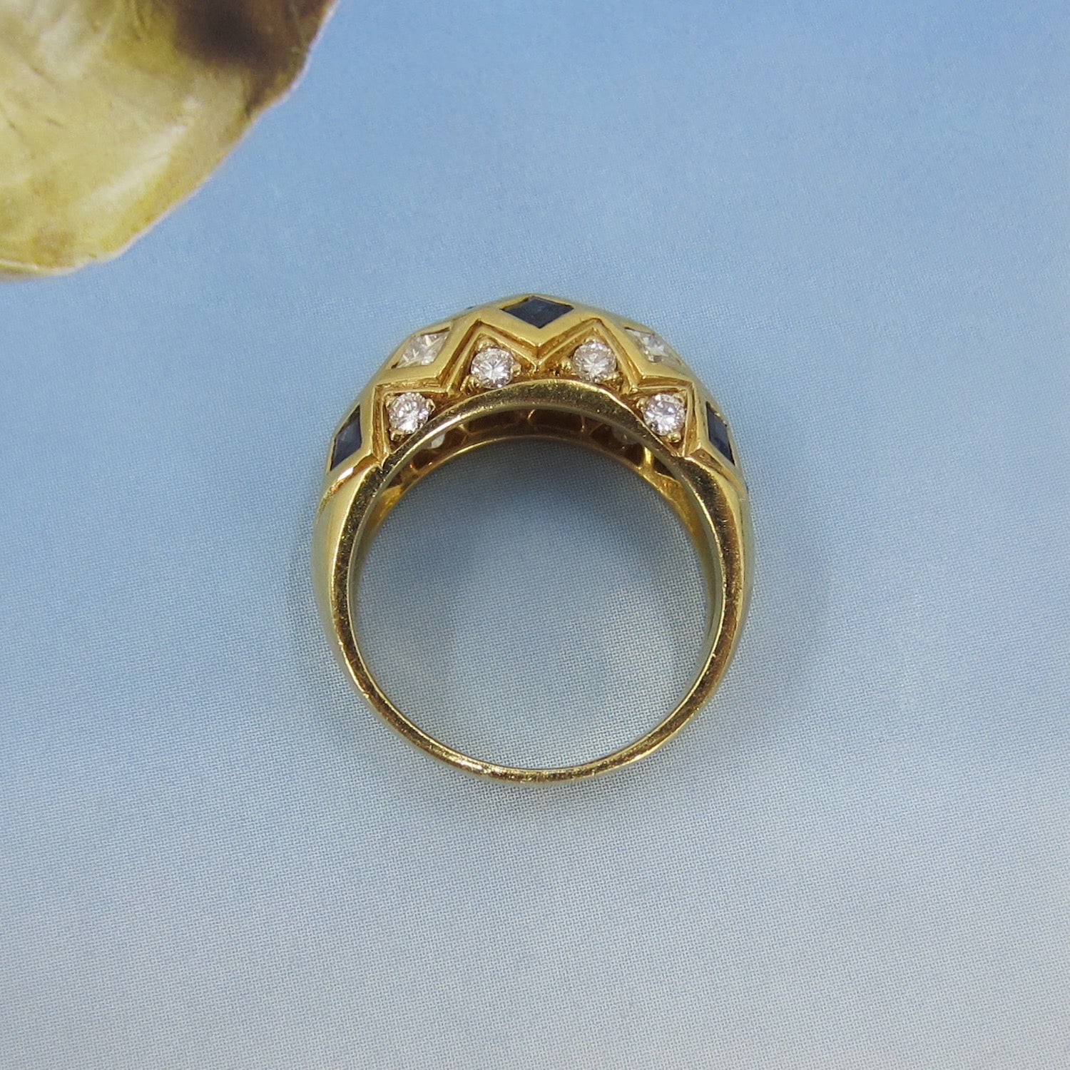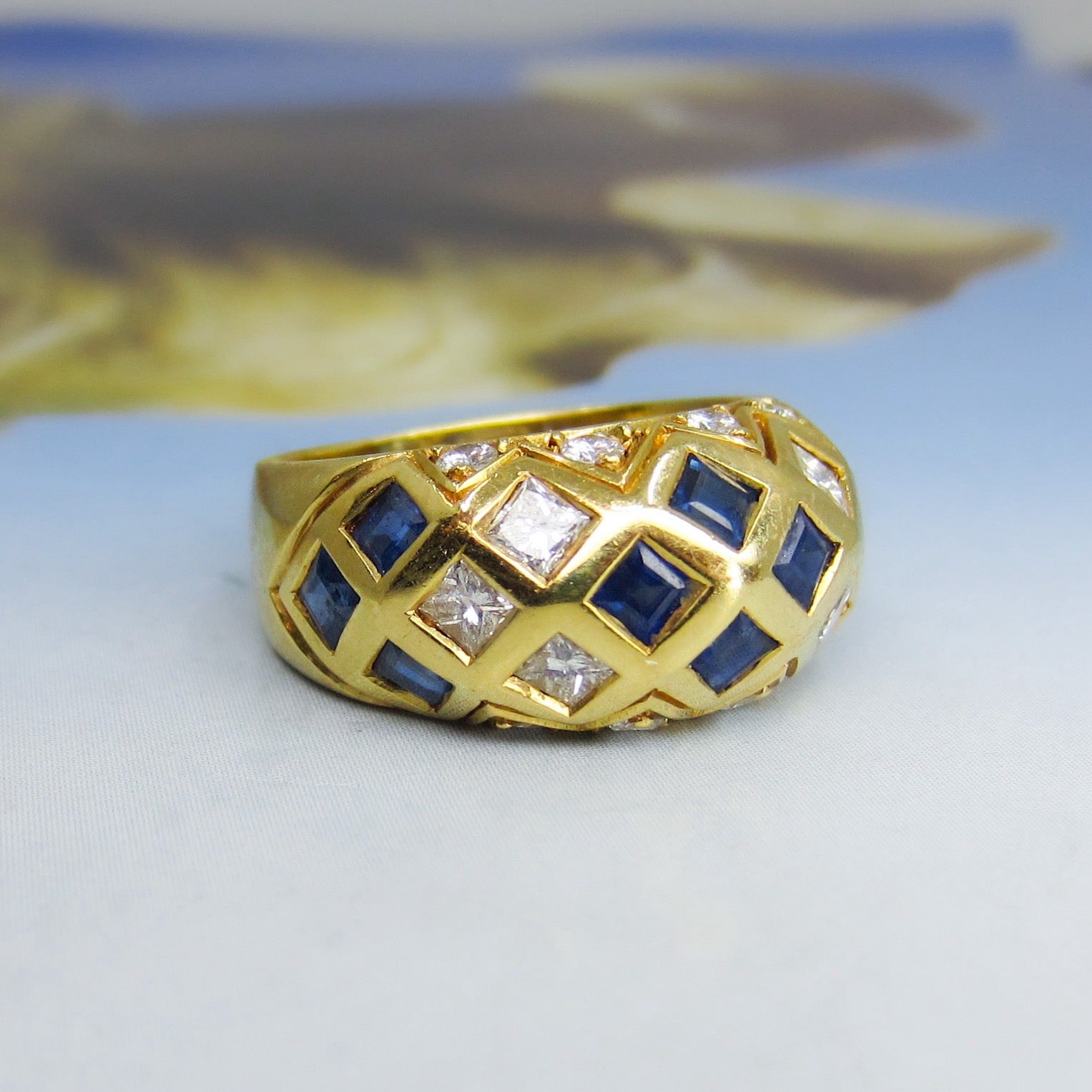 Vintage Sapphire and Diamond Dome Ring 18k c. 1990