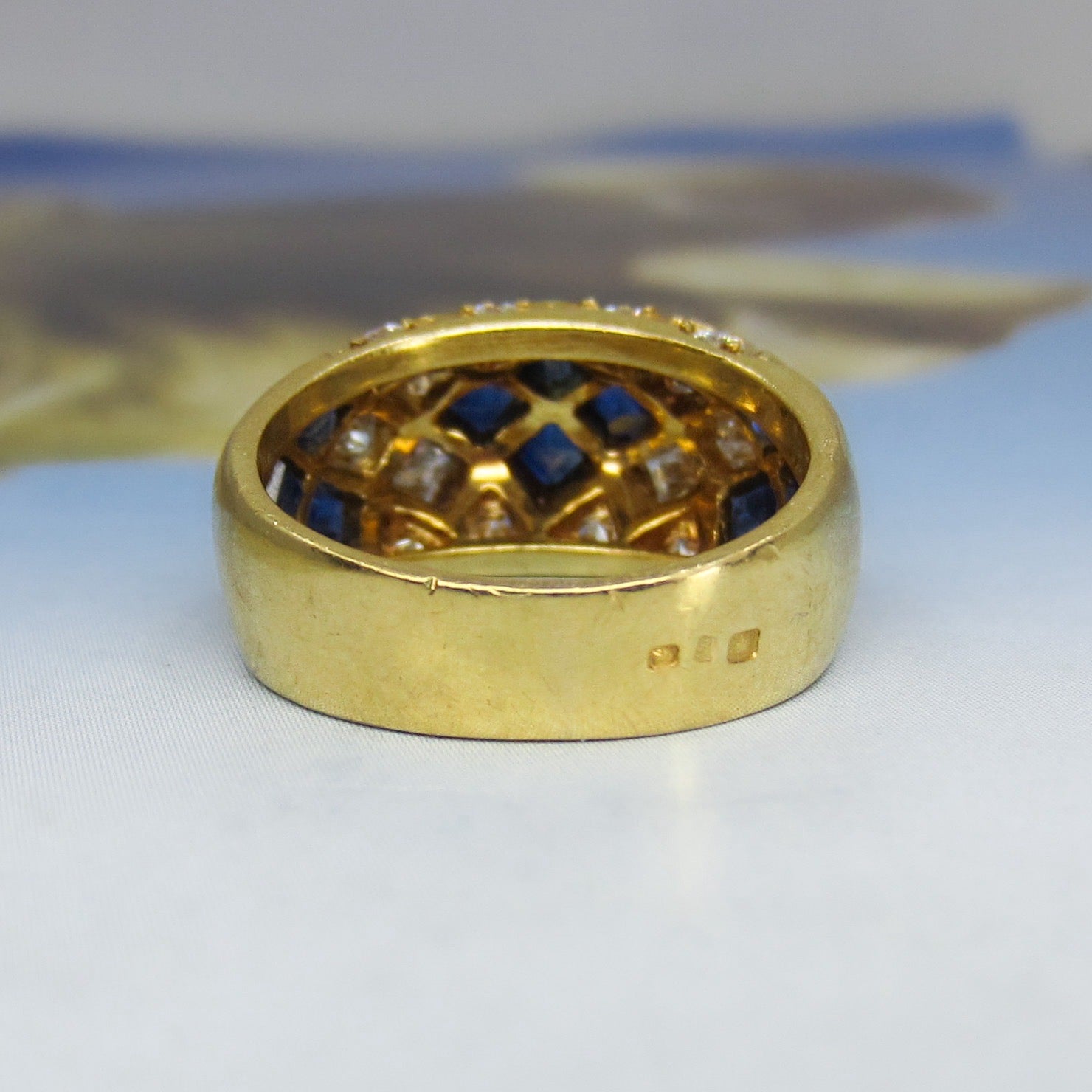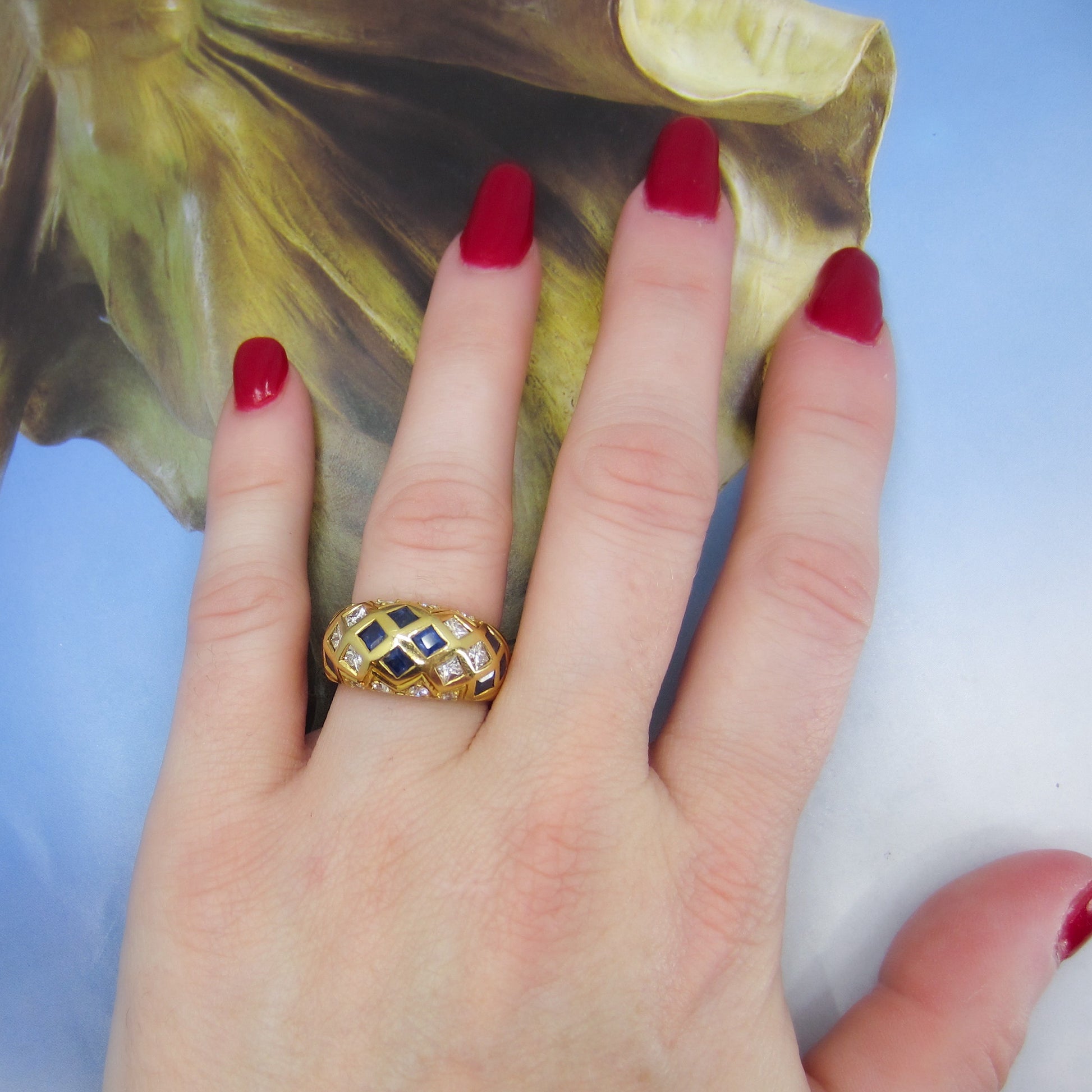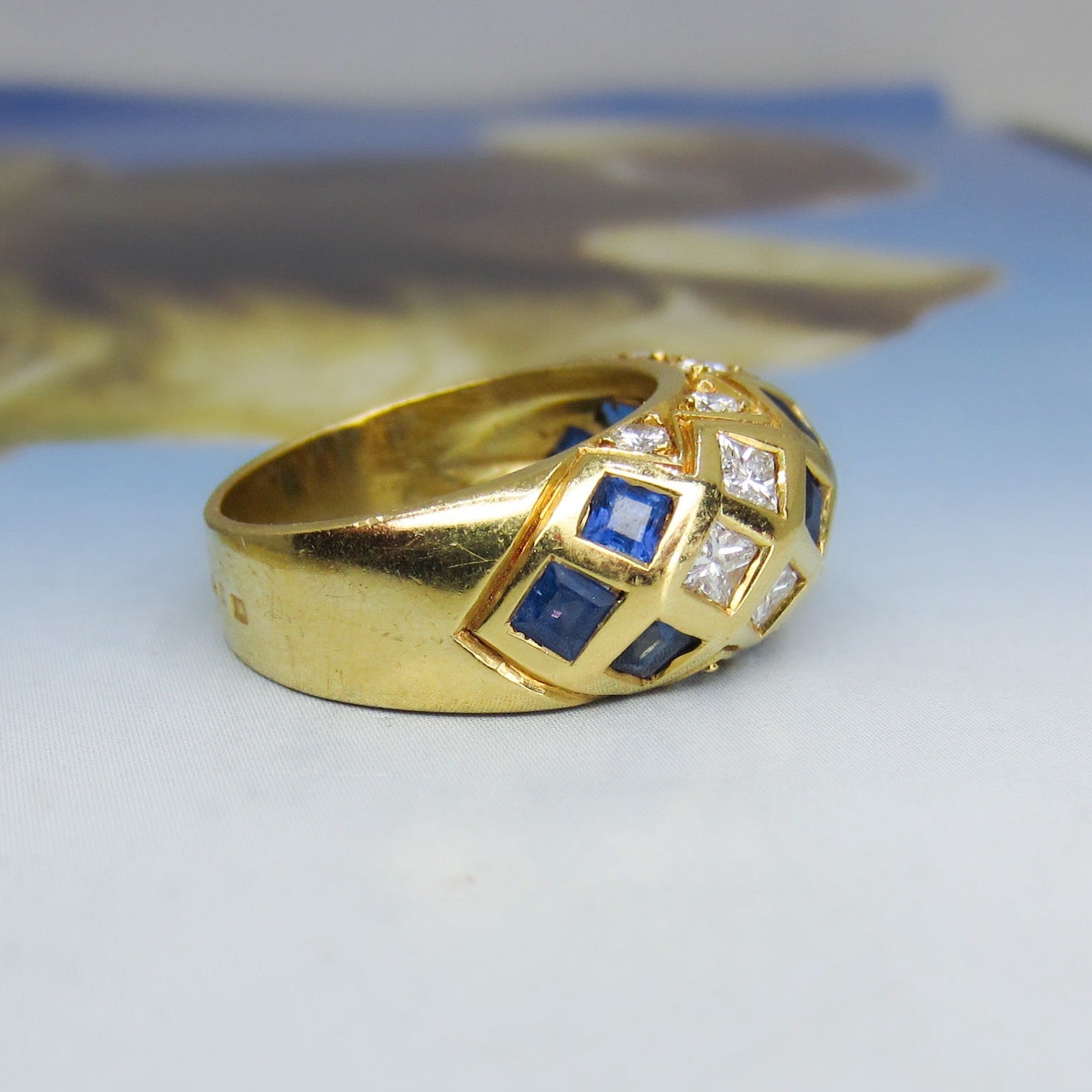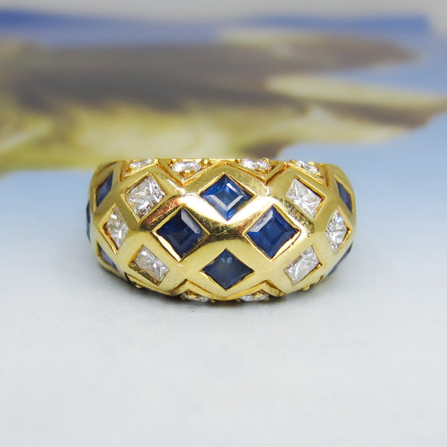 Vintage Sapphire and Diamond Dome Ring 18k c. 1990