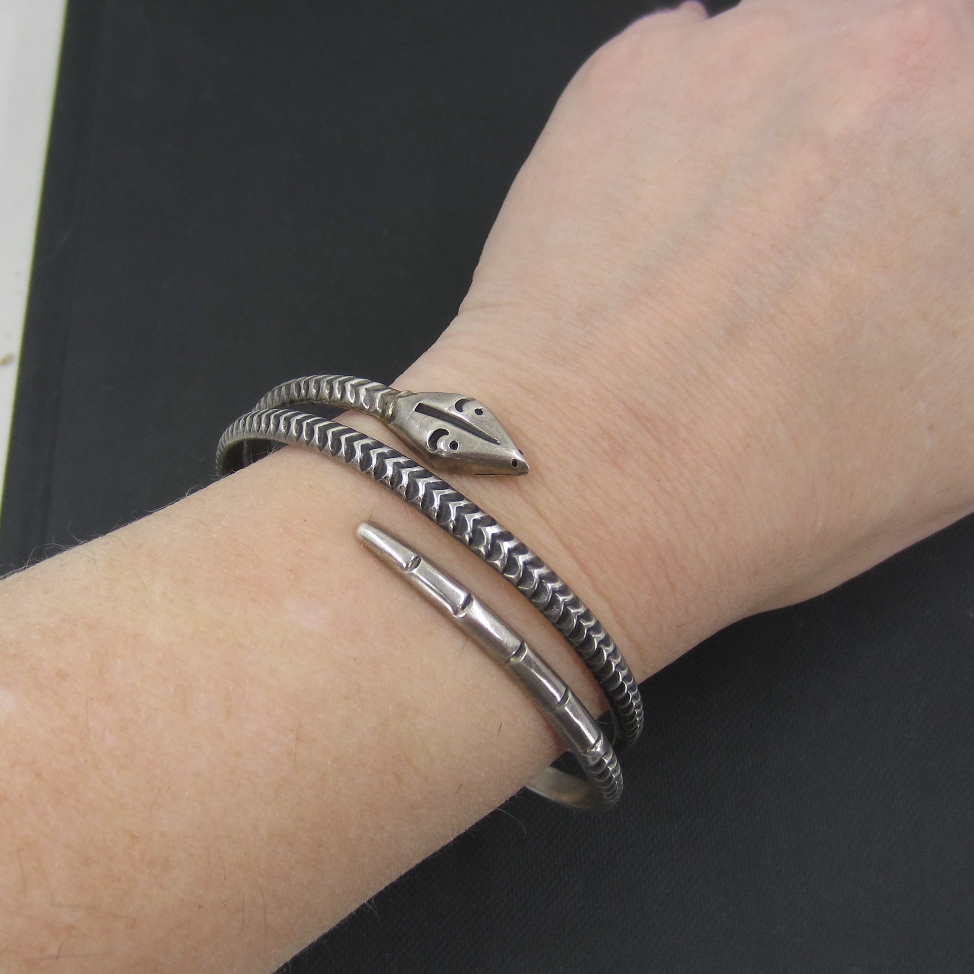 Vintage Snake Bangle Sterling, Mexico c. 1970