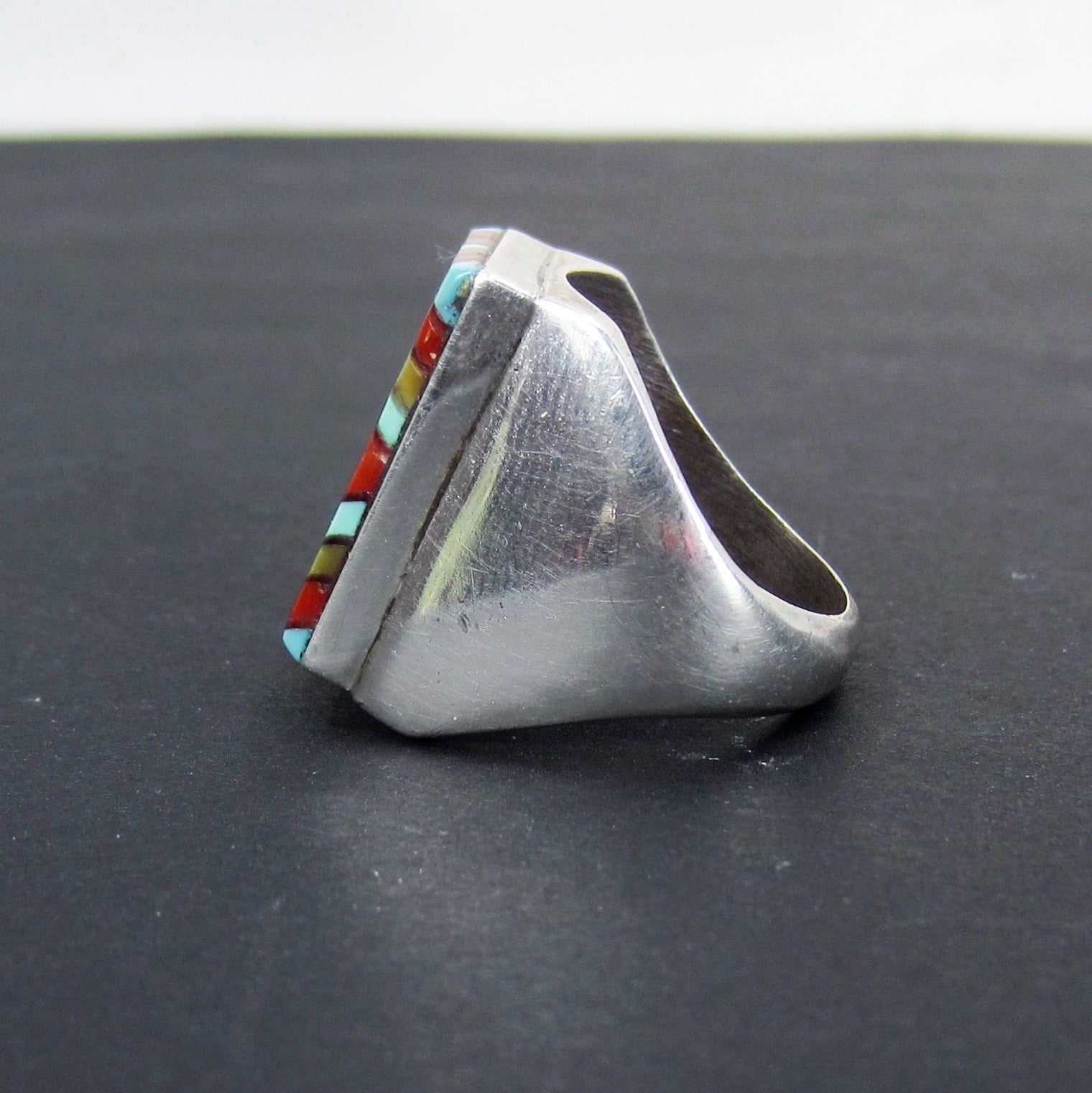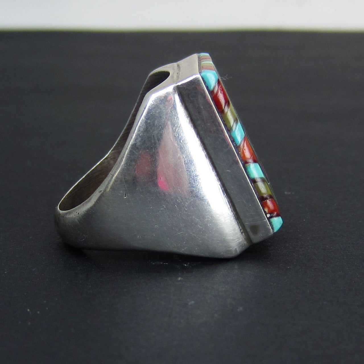 SOLD--Vintage Southwestern Inlay Ring Sterling c. 1980