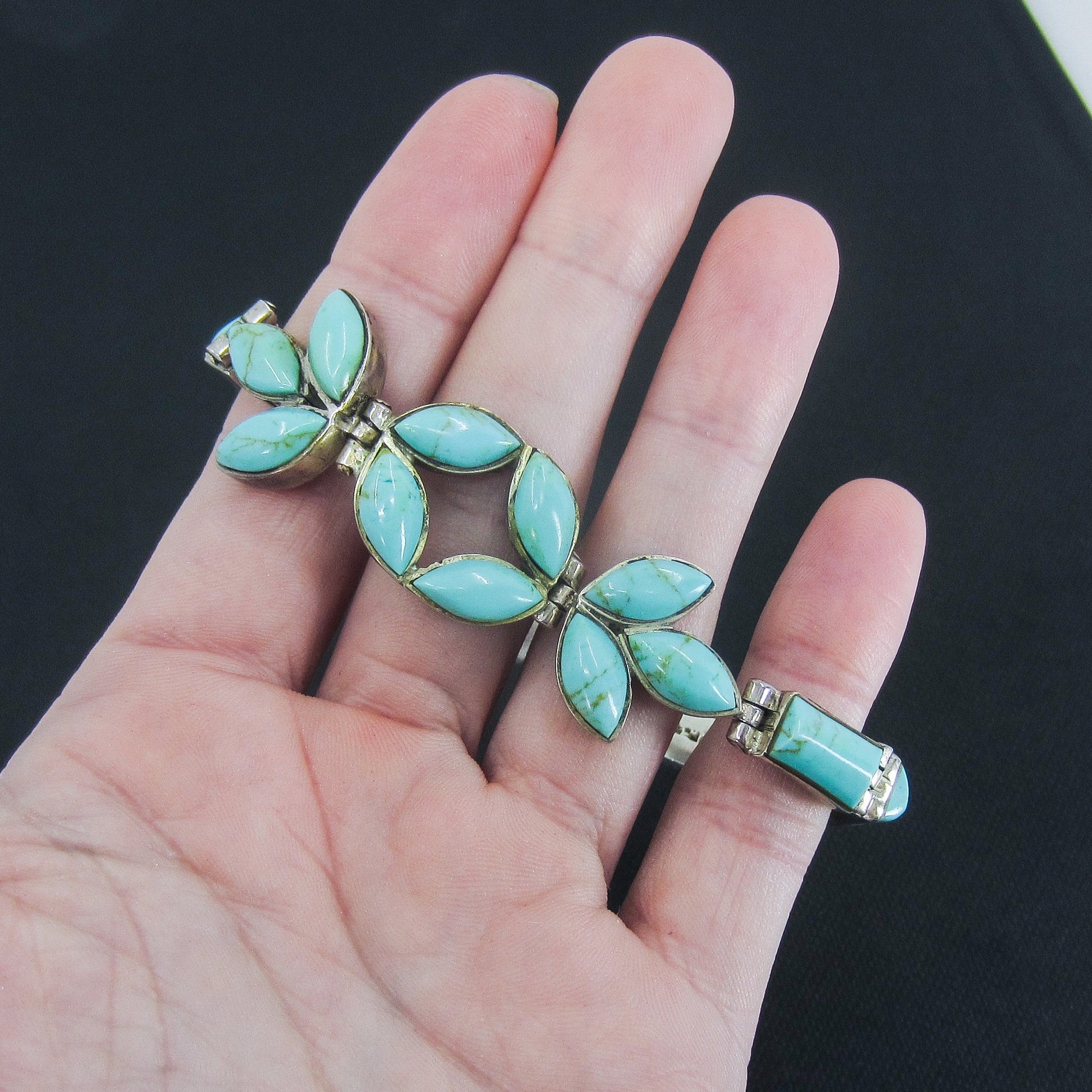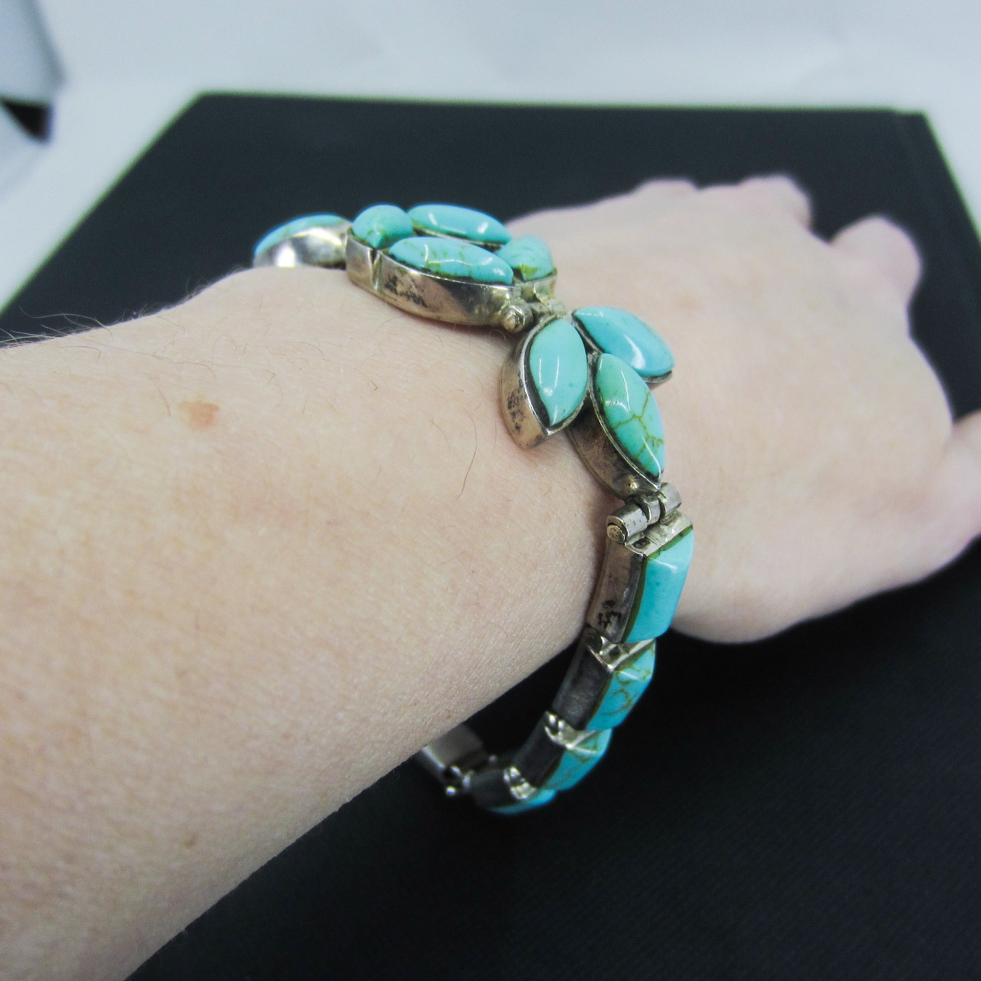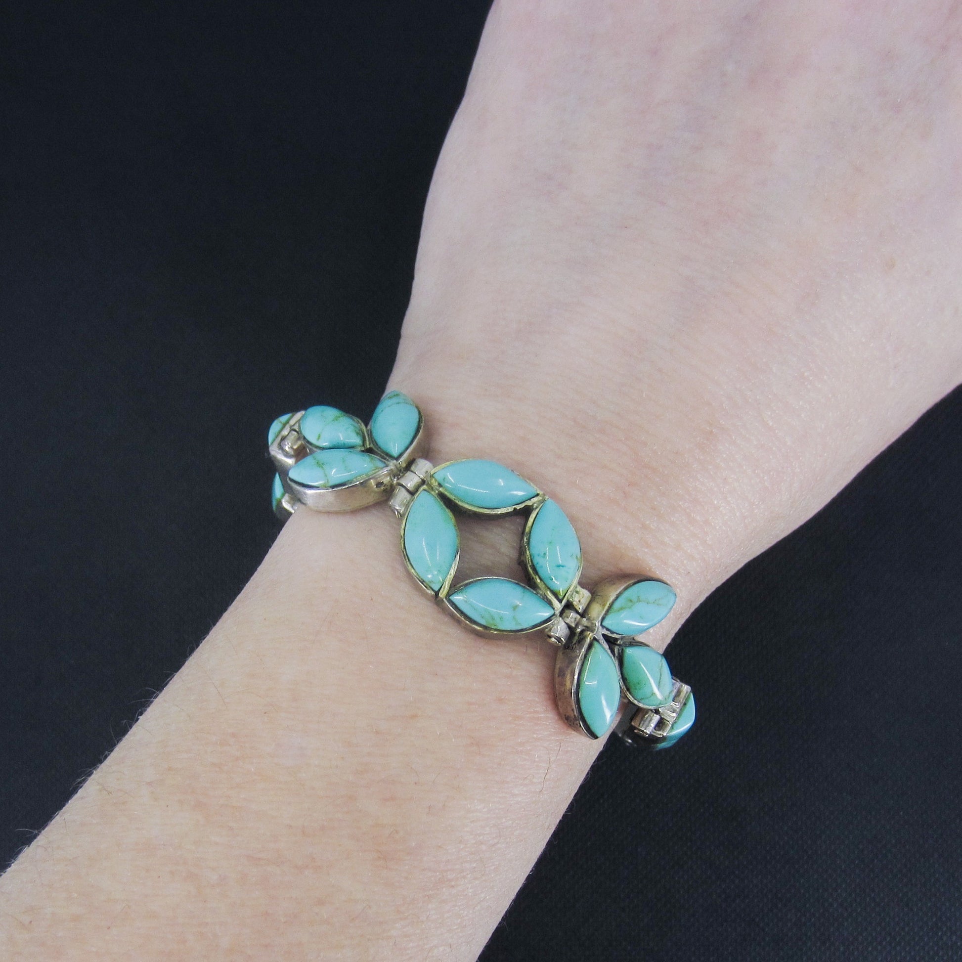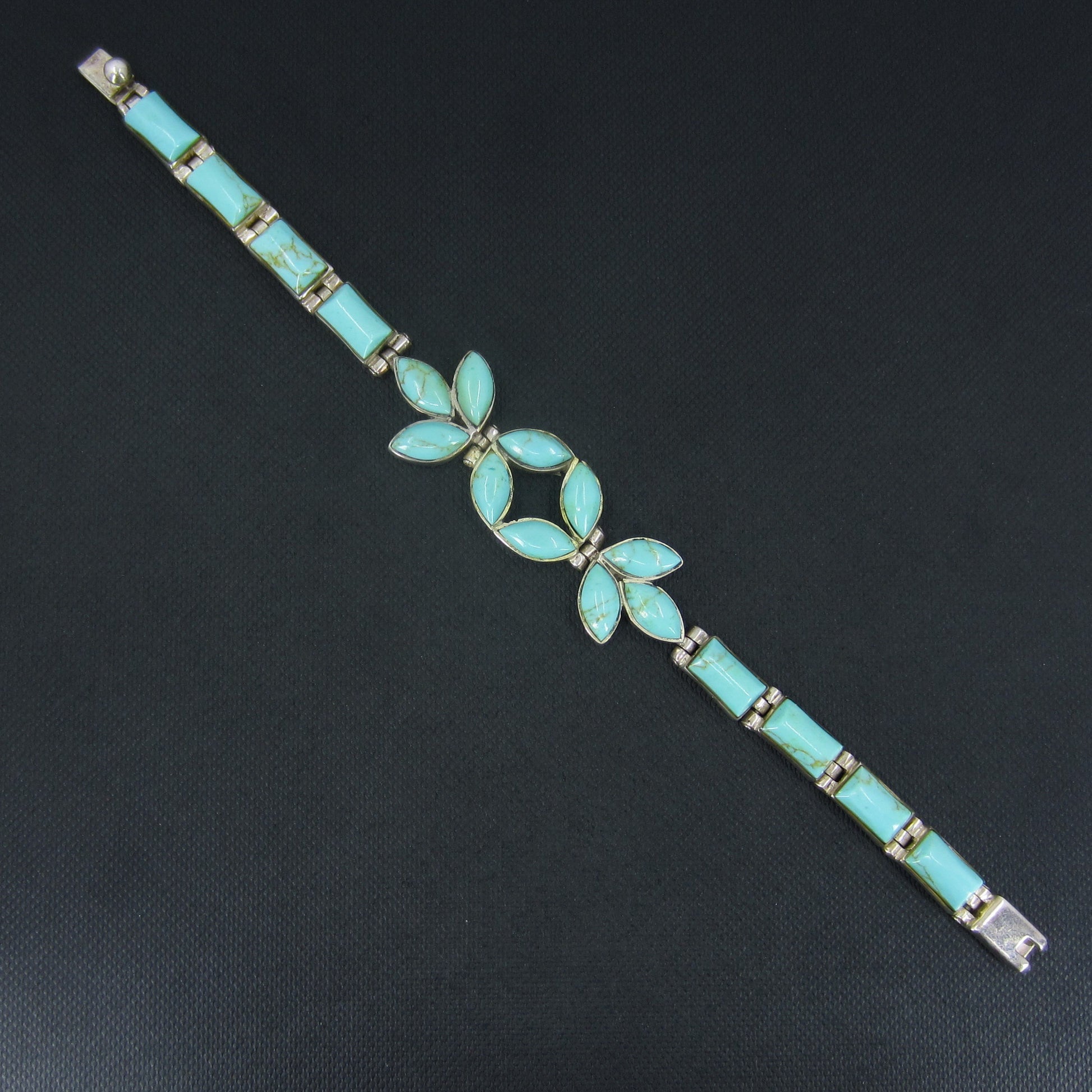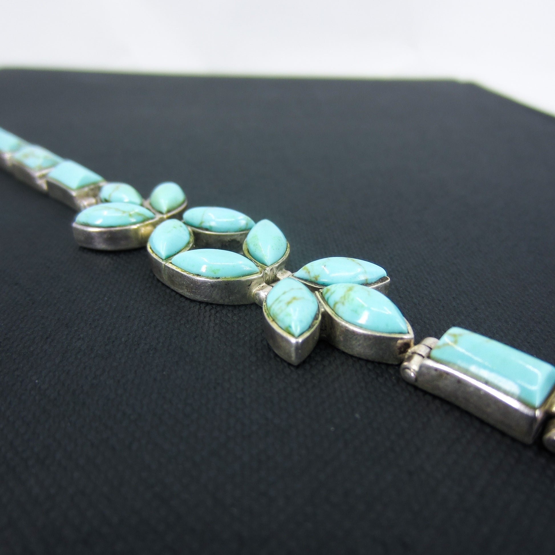 SOLD--Vintage Taxco Turquoise Bracelet Sterling, Mexico c. 1970