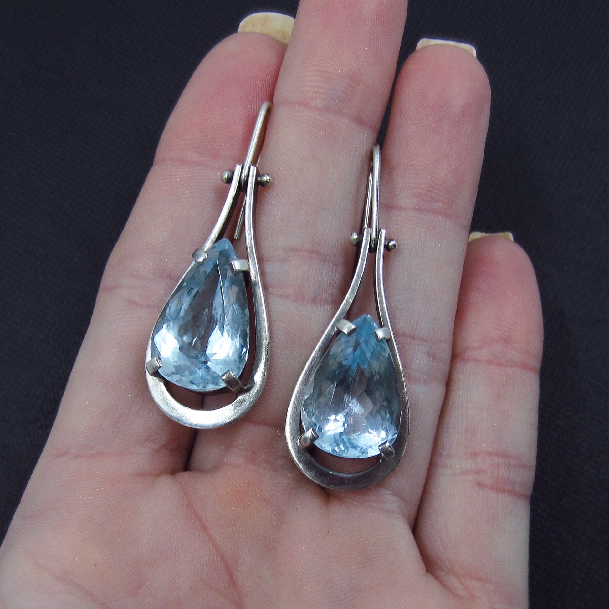 SOLD—Topaz Teardrop Earrings Sterling c. 1990