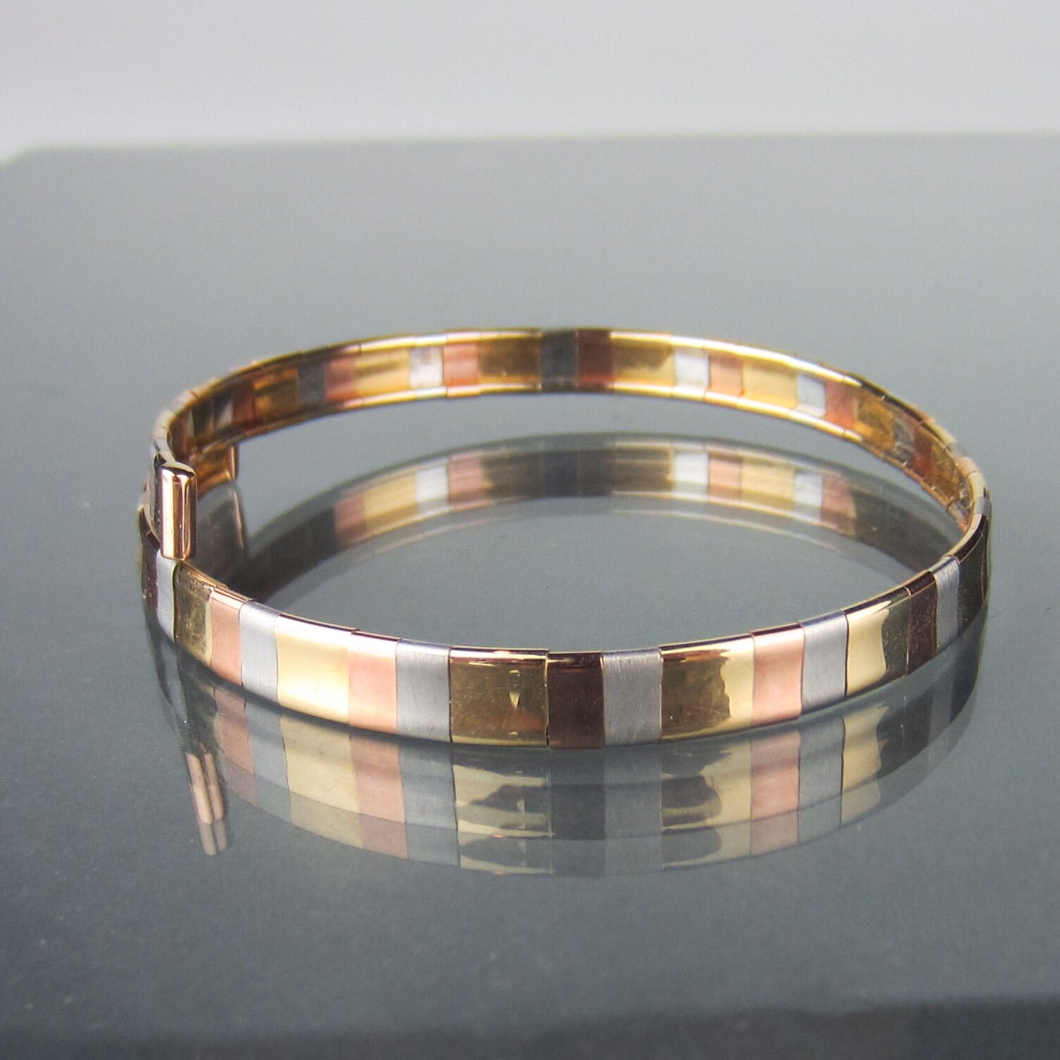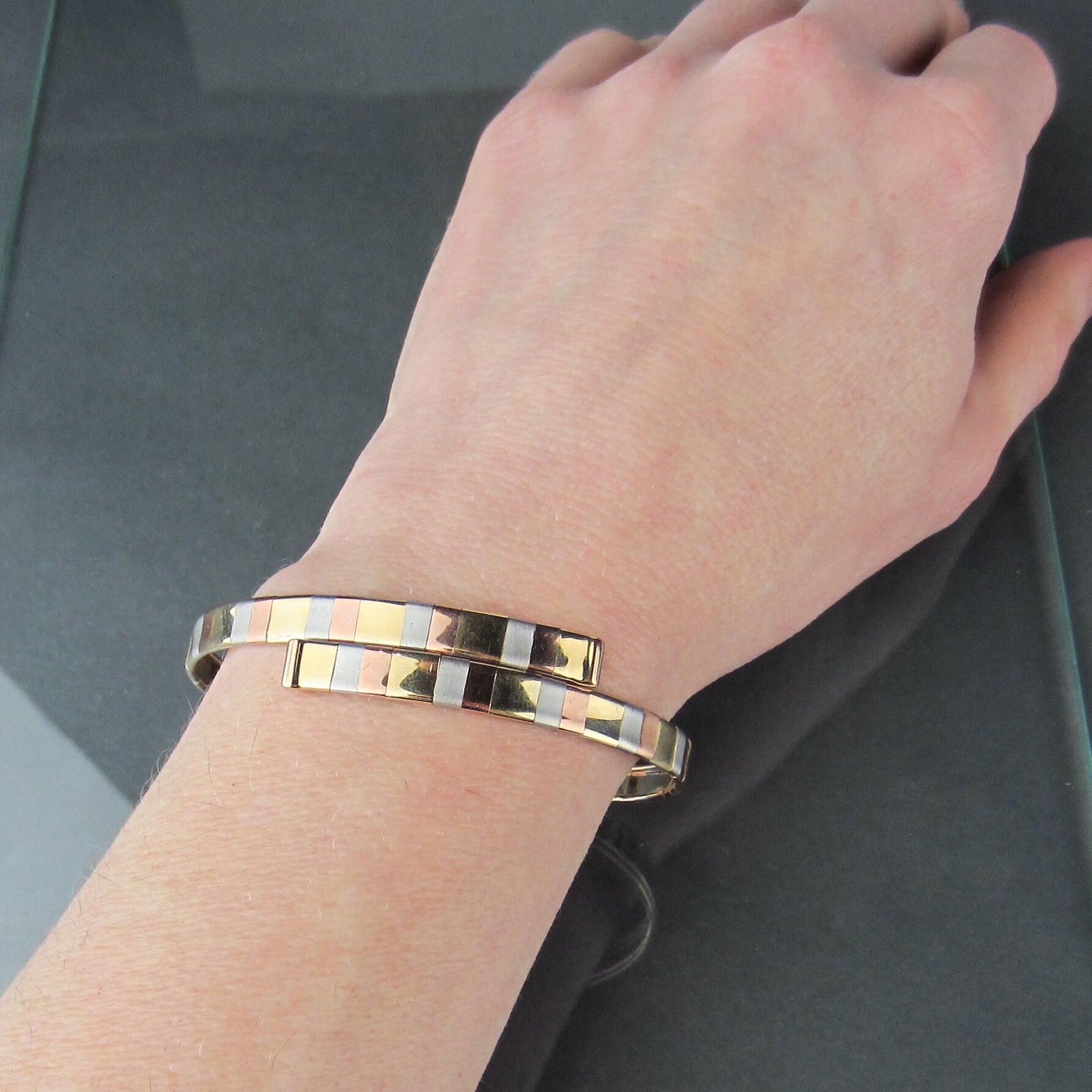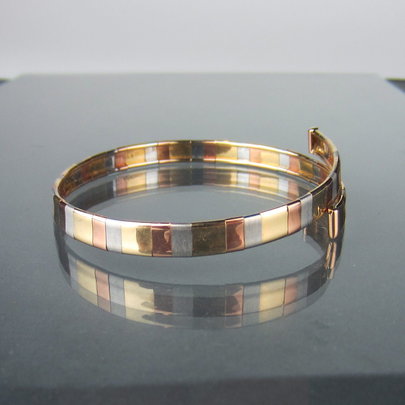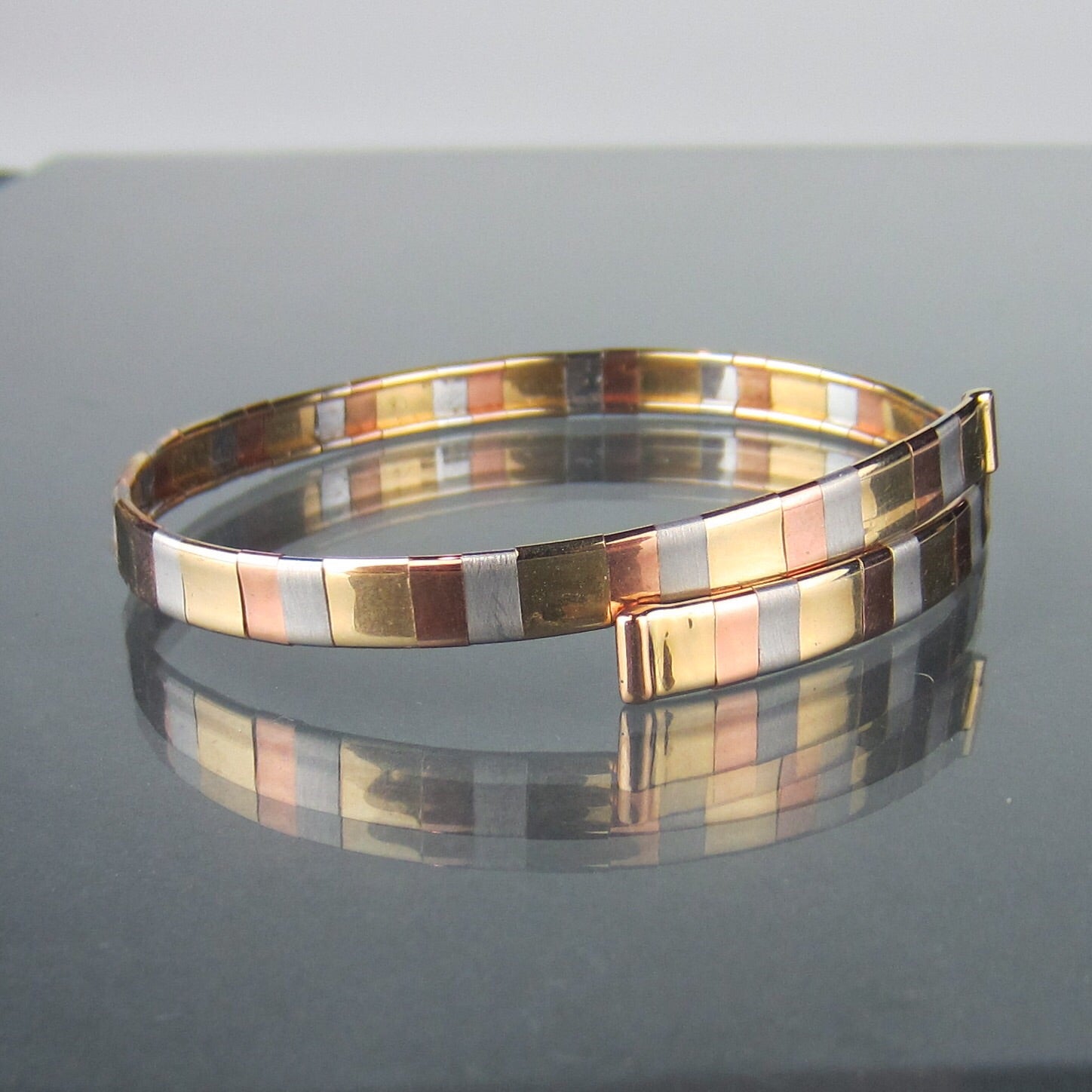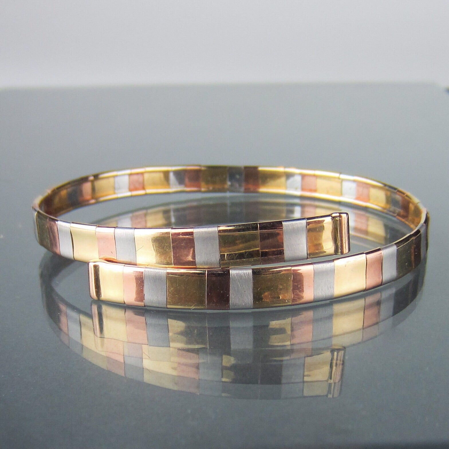 SOLD--Vintage Tri-Gold Coil Bracelet 14k, Italy c. 1980