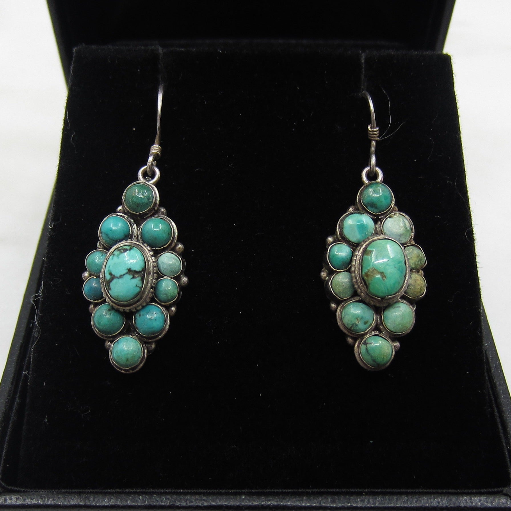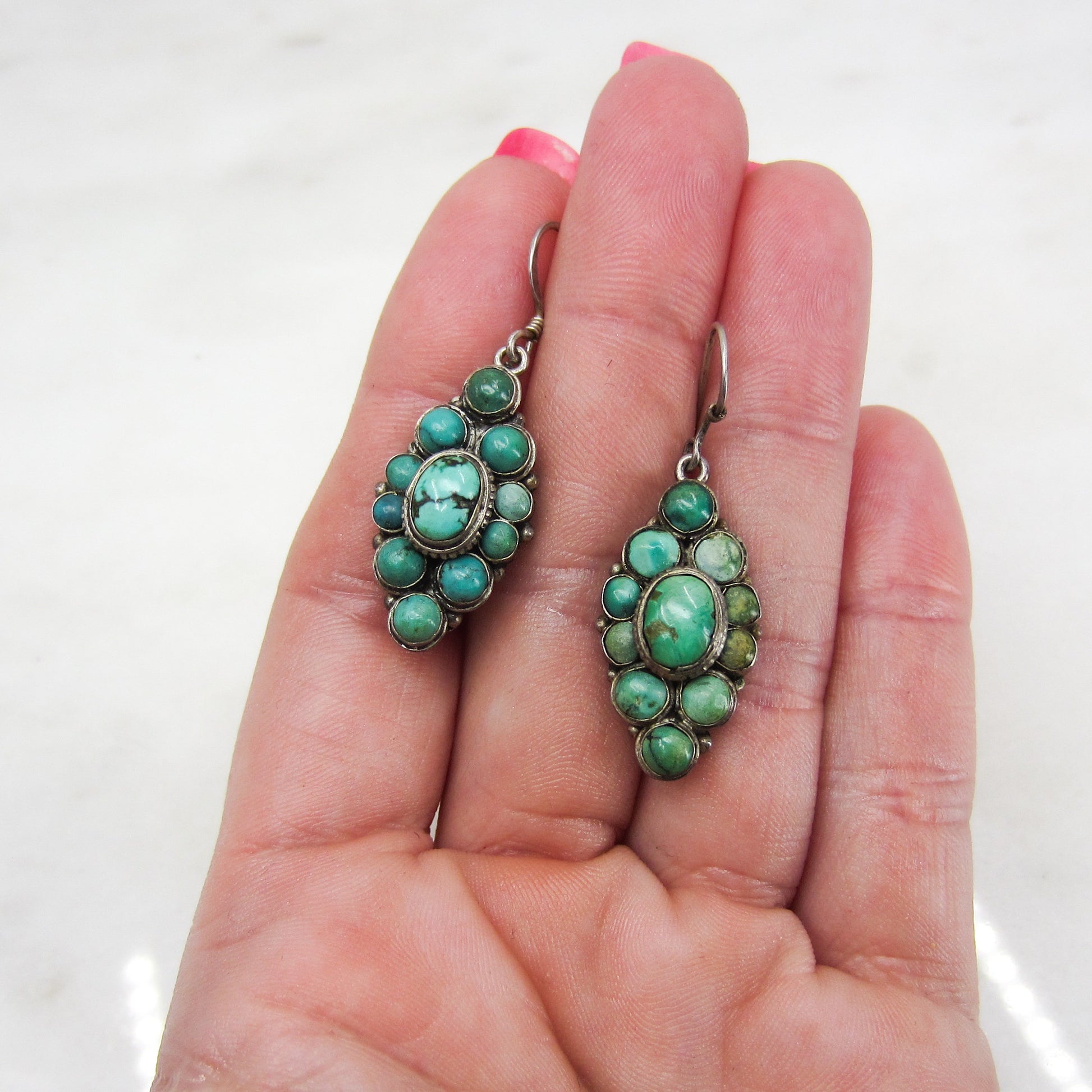 SOLD--Vintage Turquoise Cluster Earrings Sterling c. 1970